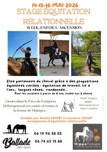 Etre partenaire du cheval grâce à des propositions équestres variées: équitation de travail, tir à l’arc, longues rênes, rando….
